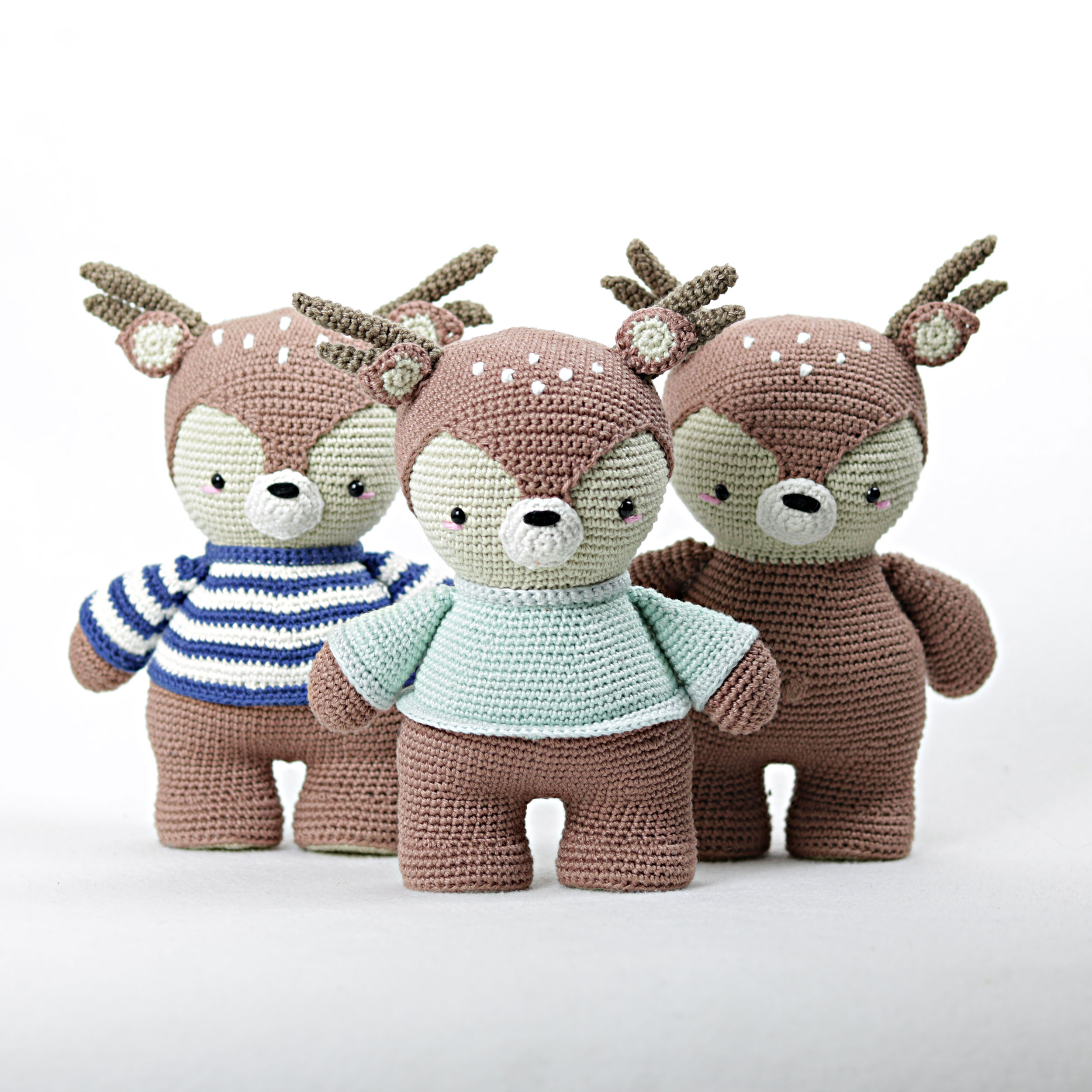 Ella es la maravillosa Rebecca, puedes llamarla Becca, como le digo yo. Es una cierva encantadora y amable. Le gusta pasear por el bosque en buena compañía e ir al cine a ver películas románticas. Mide 21 cm/ 8.26” aprox. pero podés hacerla más grande o más pequeña según el material y el gancho que uses.